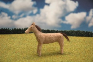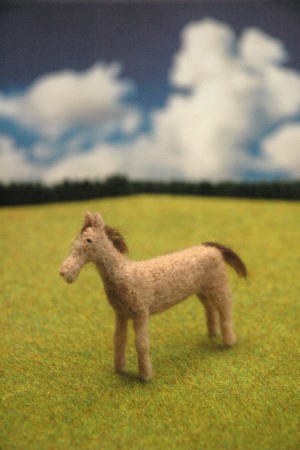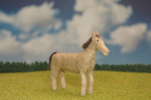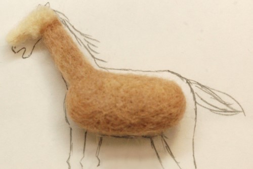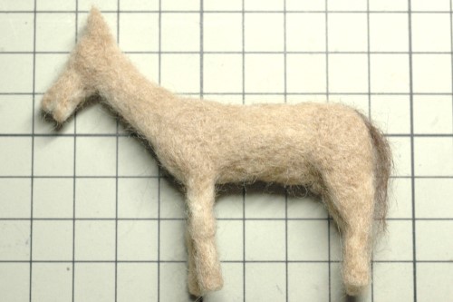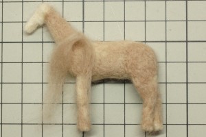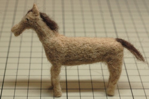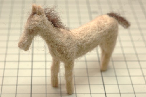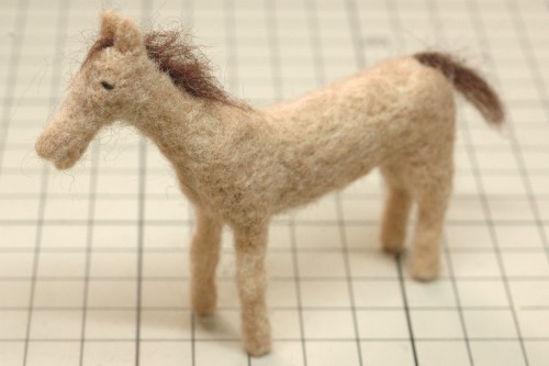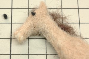 恰幅が良くなり、生き生きとしてきました。そこで、たてがみと前髪を濃い茶色の羊毛フェルトで再現しました。