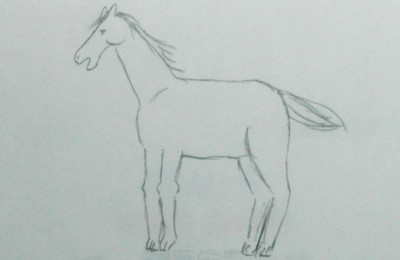 その劇画調の素晴らしい馬を見ながら、何とか馬らしきものを描くことが出来ました。