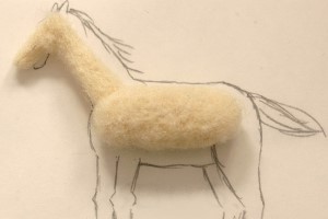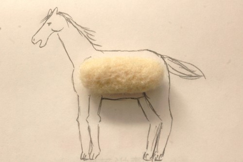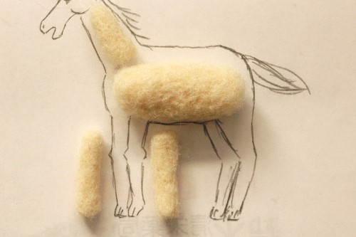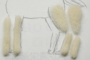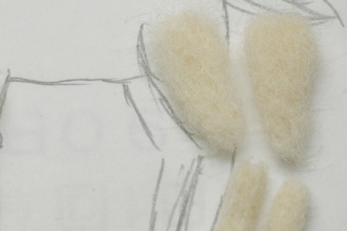 最初に胴体のベースを作りました。下絵と照らし合わせつつ「ニードルわたわた」を丸く固めました。