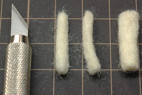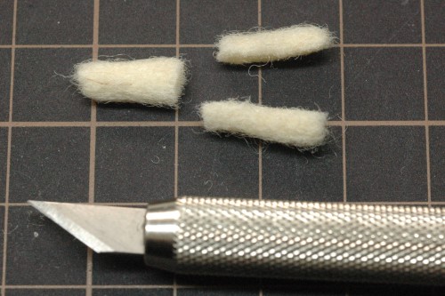 太もものベースはフェルトをへらのように平らに固めて製作しました。