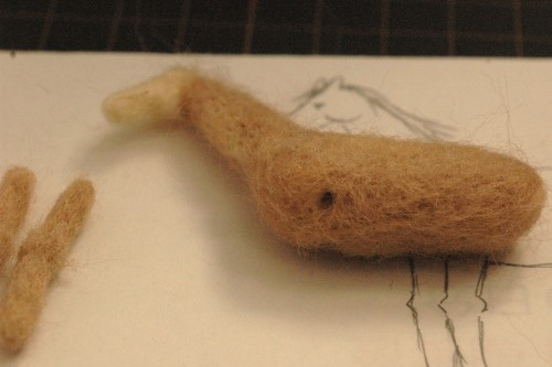 簡単そうな胴体と首に薄茶色の羊毛フェルトを追加してみました。