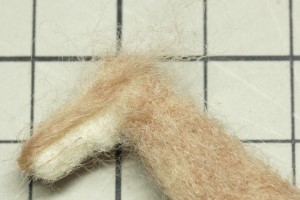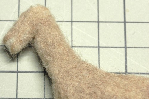 前足は関節を意識して真ん中に節を作りつつ、薄茶色の羊毛フェルトを被せました。