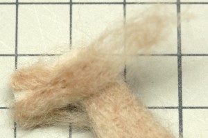 次は足の取り付けですが、胴体に取り付けてしまうと、色付きの羊毛フェルトを被せにくくなりそうです。そこで、色付きの羊毛フェルトを被せてから取り付けることにしました。