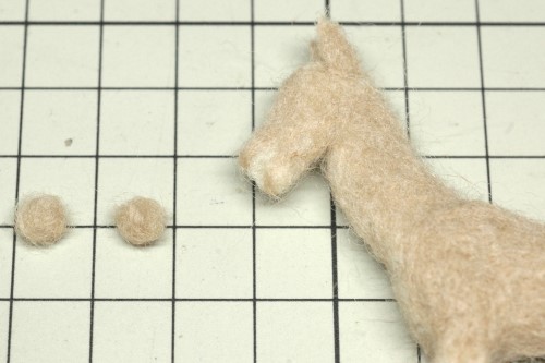 さらに継ぎ目に薄茶色の羊毛フェルトを追加して、滑らかに胴体につながるように加工しました。