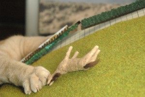 クルマのプラモと組み合わせるため、出来上がったものはかなり小さいです。そのため、特にネコの手足やしっぽなどの細い部品の製作は、なかなか思い通りになりませんでした。