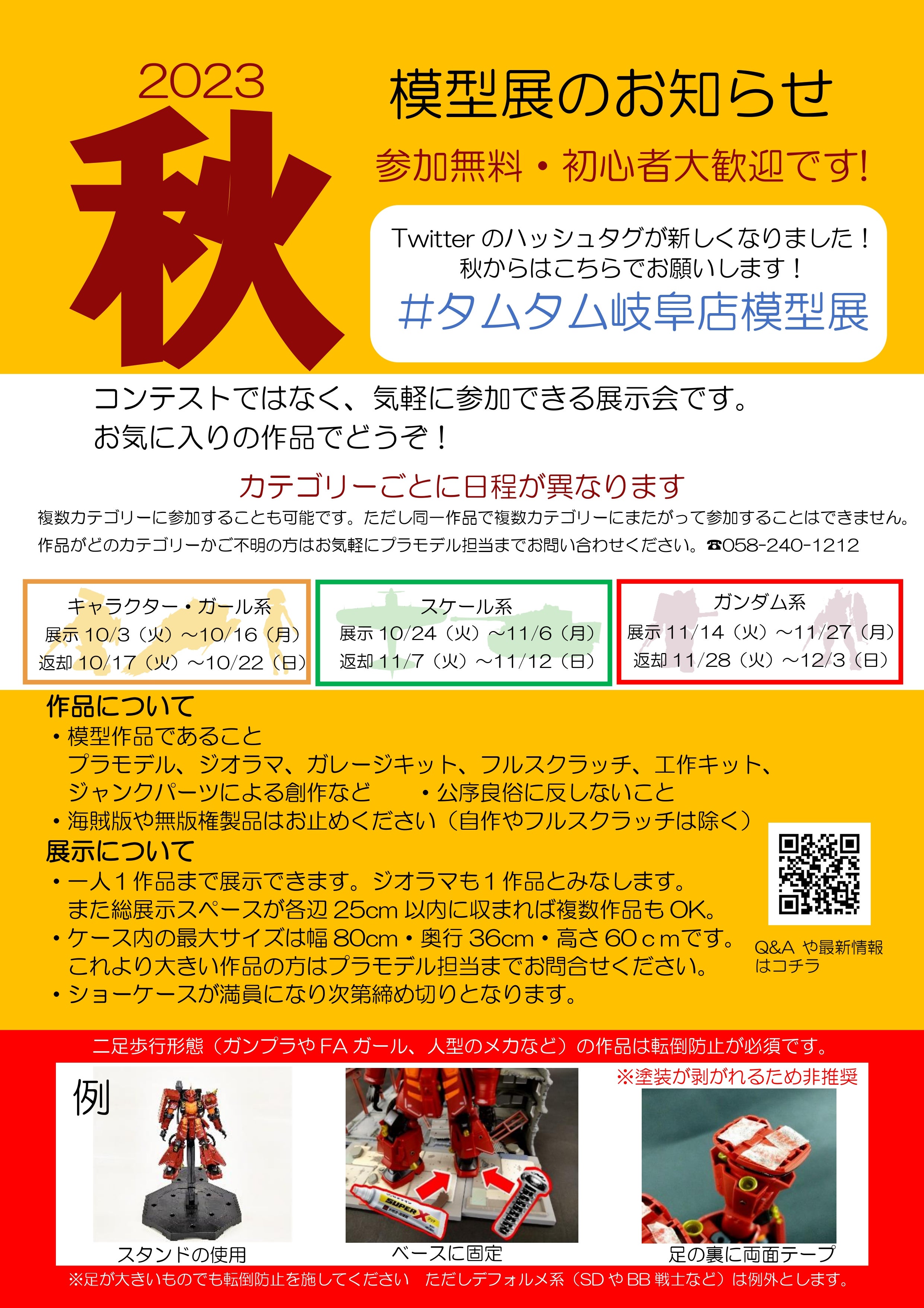 タムタム岐阜店さんでは、随時展示を受け付けているようです。(詳しくは以下をご覧ください。新しいタブで開きます。)