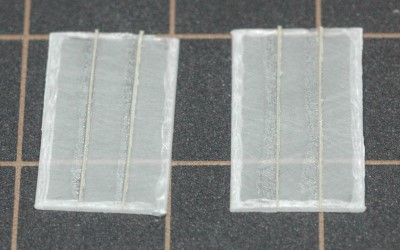 そこで、プラバンに伸ばしランナーを貼ったものを用意して塗装のテストを行うことにしました。