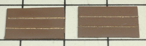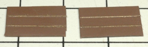そこで、2つのうち1つにMr.カラーC9「ゴールド」を塗ってみました。色鉛筆の金色を消しゴムで取り除いた後、伸ばしランナーの両側にマスキングテープを貼ってドライブラシしてみました。