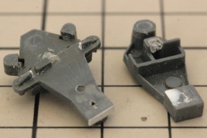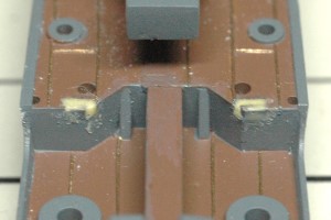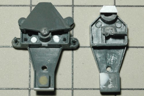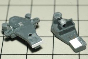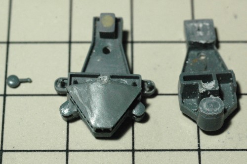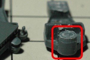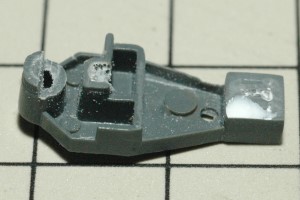 また、その手前の四角い部分の上面に突き出しピン跡があったので、エポキシパテで埋めて平らに均しました。