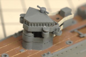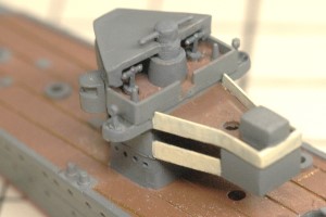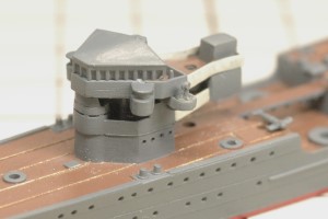 艦橋上部と内部に測距儀を接着。キットのパーツをそのまま使いました。