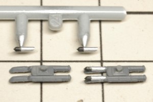 艦橋上部に双眼鏡の支柱と思われる棒が2本モールドされています。この上に双眼鏡を取り付けました。