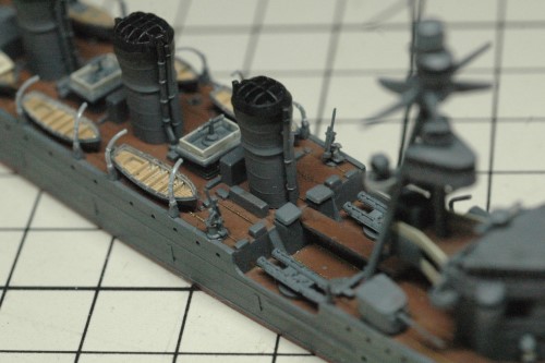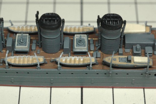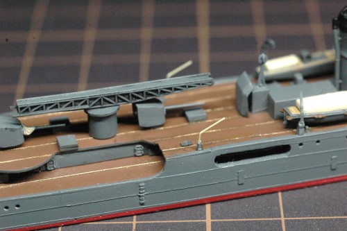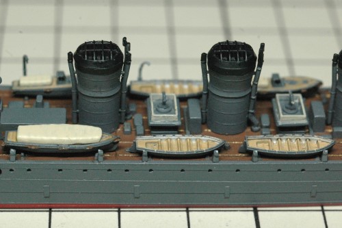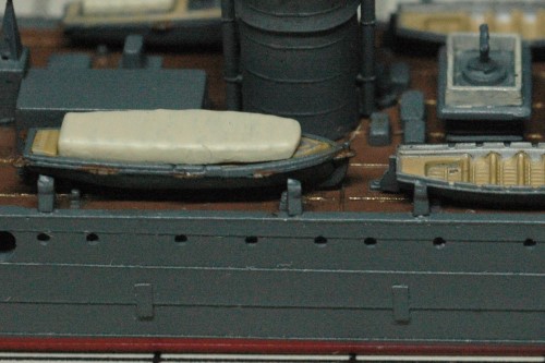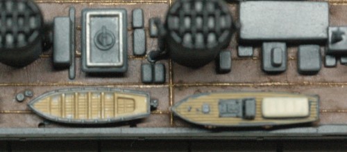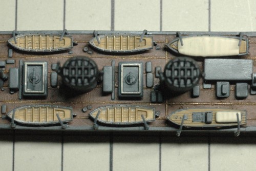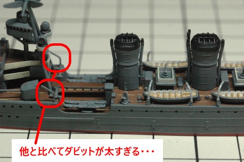 書籍に掲載された写真をよく見ると、艦載艇とボートダビットの構成が当初の予定とは異なることが判明。新たに判明した構成で製作を進めました。