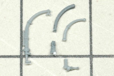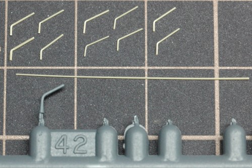 伸ばしランナーを曲げる角度やサイズはキットのパーツをガイドとしました。また、必要なのは7つですが、予備として少し多めに製作しました。