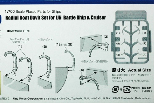 使用するのはファインモールド1/700ナノドレッドシリーズWA06「ラジアルボートダビットセット(大型艦用)」です。