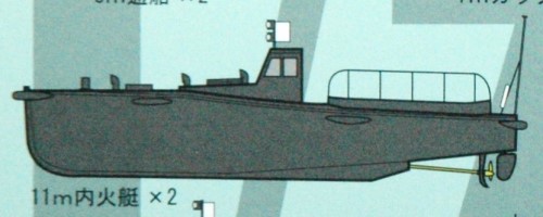 11m内火ランチは、「新艦船装備セット2」には入っておらず、ファインモールドからも発売されていません。